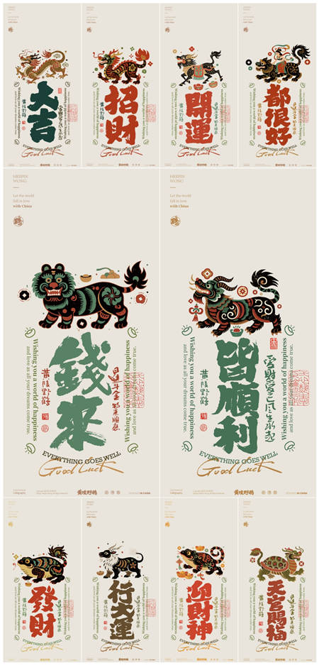 汉砖版画拓印风格系列(白底)